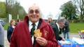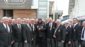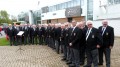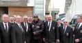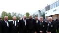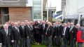 In typical April windy weather sending Musical Director for the day, Shirley Ann’s music sheets flying across the lawns, the Choir, accompanied by guest accompanist Gavin Parry, kept up a non-stop rendering of Welsh classics including Llanfair, Llef, Gwahoddiad, Tydi a Rhoddaist, O Gymru, Yfory and Rachie among others for about forty minutes until Sir Ian passed through the gates. Good job we weren’t singing ‘Wise Men Say, Only Fools Rush In’ at the time, although we’d sung it earlier! Don’t ever complain about having to stand at practice, lads – we know you can do it! We were enthusiastically encouraged all the way by flag waving children opposite us. But then they appeared to be cheering everyone!