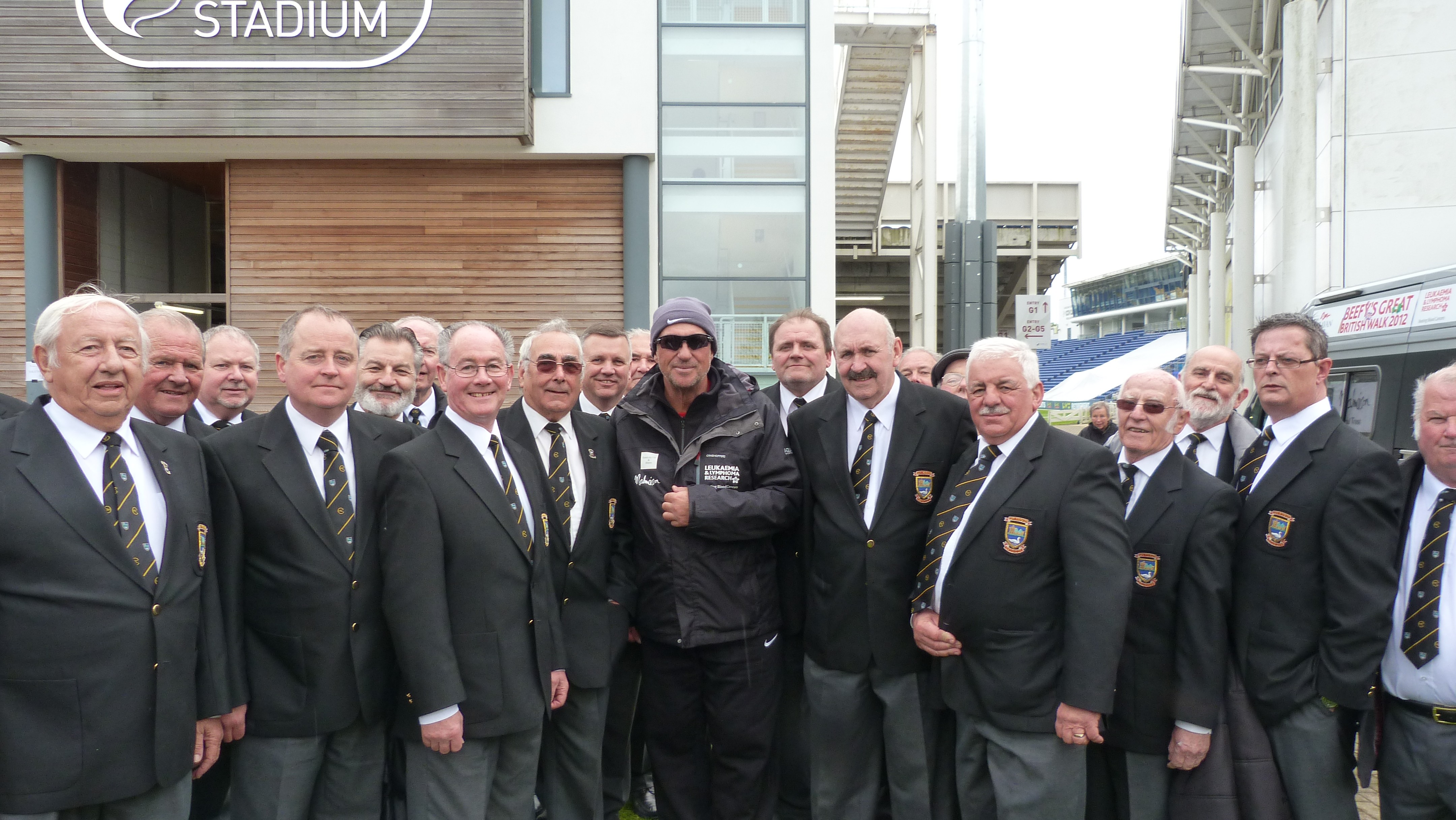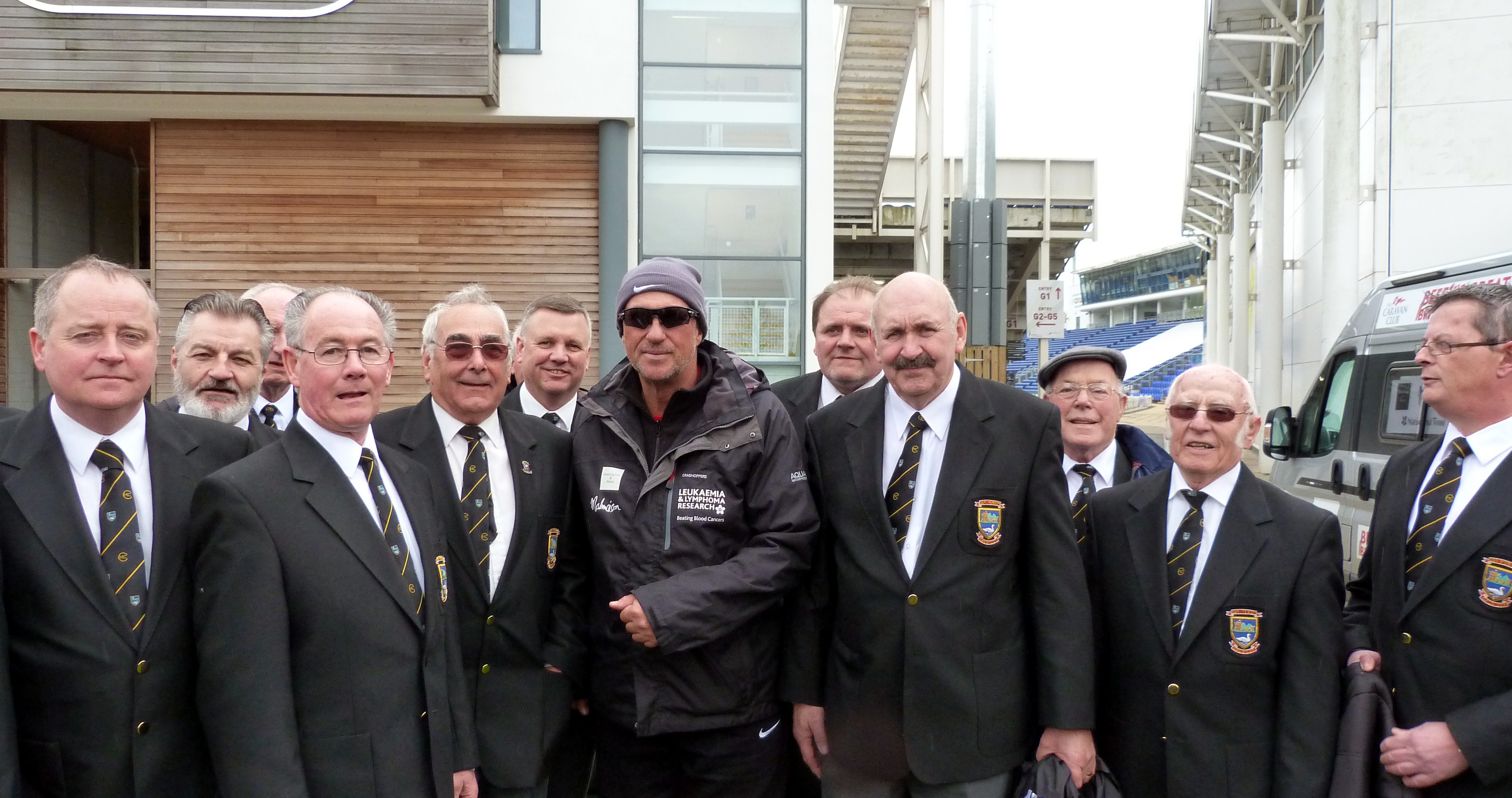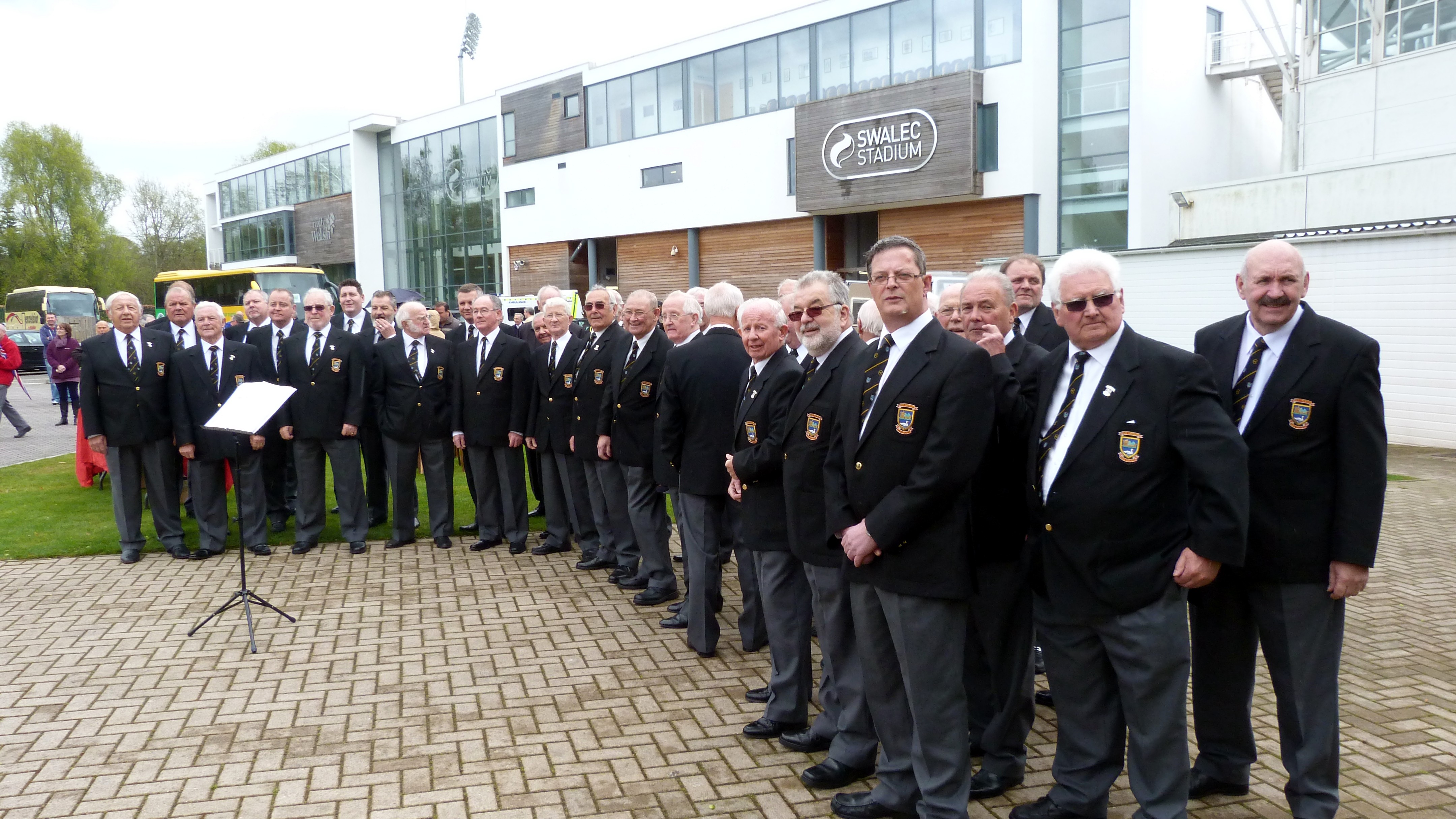 The Choir made the short journey from Caldicot to Cardiff, to the magnificent 16,000 plus seat Swalec Stadium, the new home of Glamorgan County Cricket Club and entertained, in blustery, showery conditions the crowds and supporters of Sir Ian Botham’s Cardiff Stage of his Beefy’s Great British Walk in aid of the Children’s Leukaemia and Lymphoma Charity.