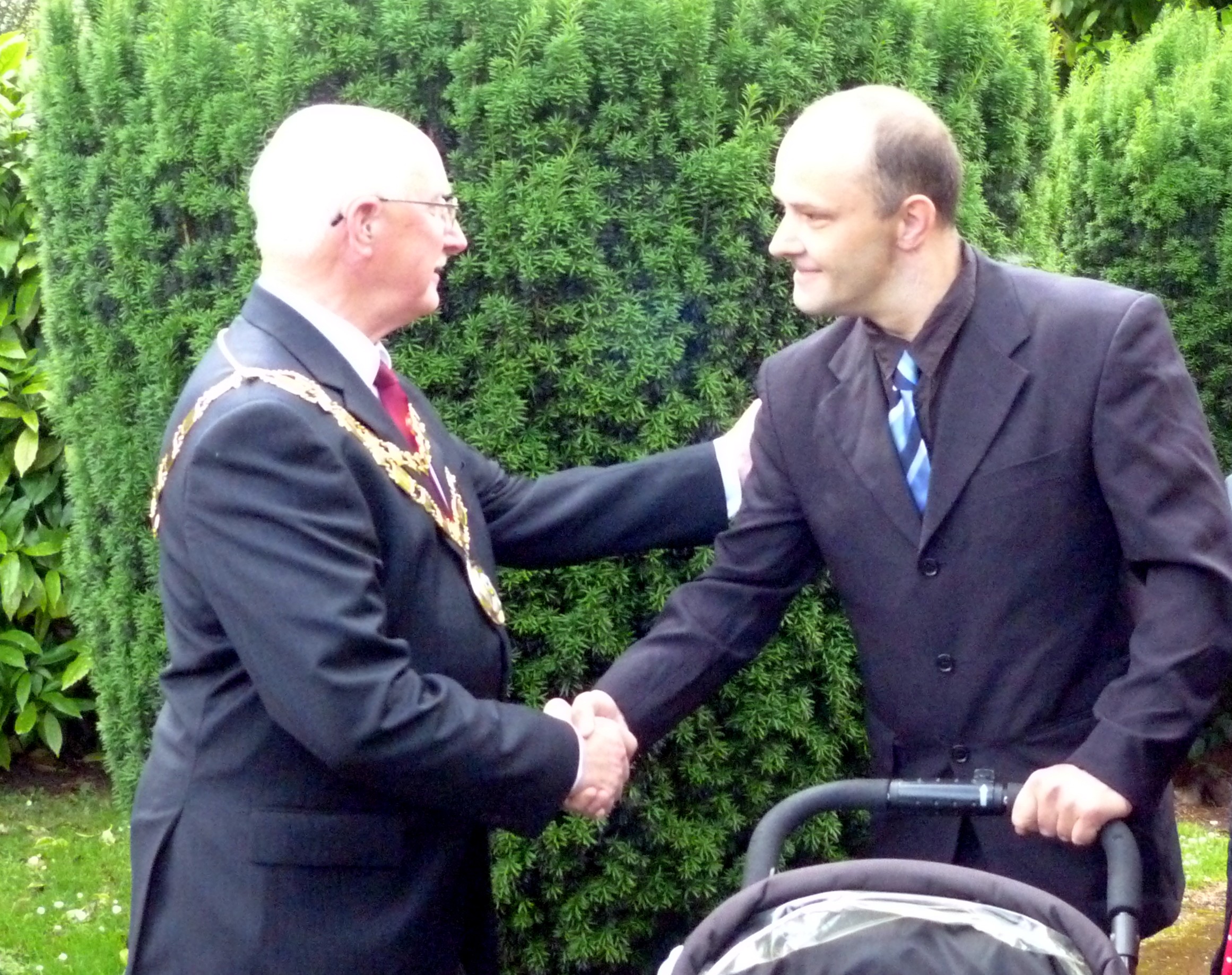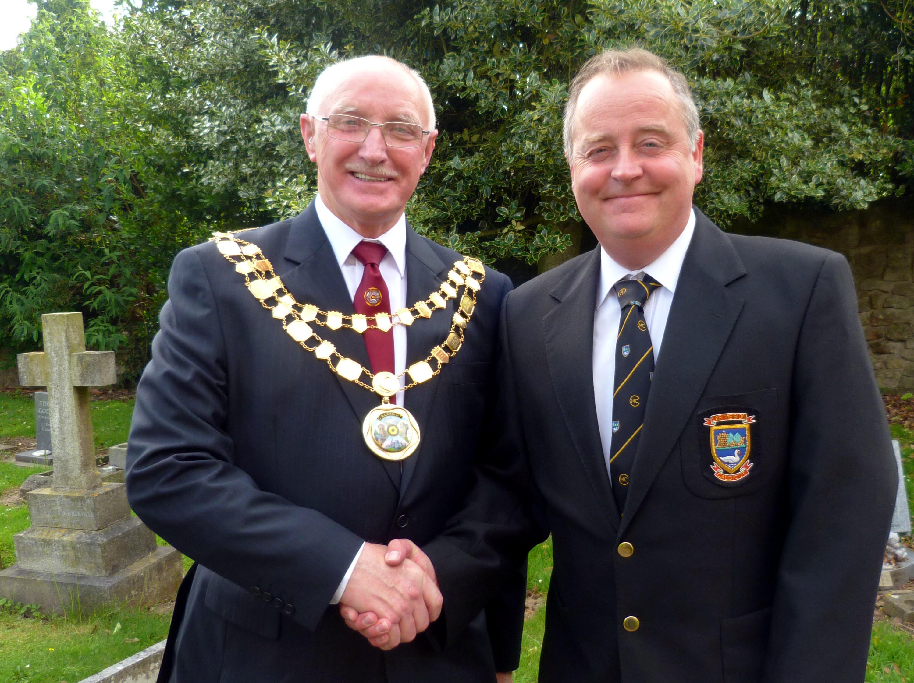 Leaving the wettest June on record for a reasonably sunny July day and surrounded by civic dignitaries with enough gold chain to put Tutankhamun to shame,  Jeff Williams and Lyn Gauntlett were pleased to represent the choir at the Civic Service on the occasion of the offiicial attendance of the Mayor of Caldicot, Councillor Jim Higginson. The service on 1st July at St Mary the Virgin in Caldicot was conducted by Rev. Den Richards, vicar of Portkewett who replaced Lyndon Harrison due to illness.  The service was jointly conducted by Caldicot Methodist Minister Rev. Preben Anderson and lessons were read by Rev. Annie Church and Rev. Alison Littler, who was only ordained yesterday. Hymns included Love Divine, Guide me, O thou Great Redeemer and Praise my Soul, the King of Heaven during which a collection was made on behalf of the Mayor’s Charity, Ty Hafan Children’s Hospice and St. Mary the Virgin Parish Church.