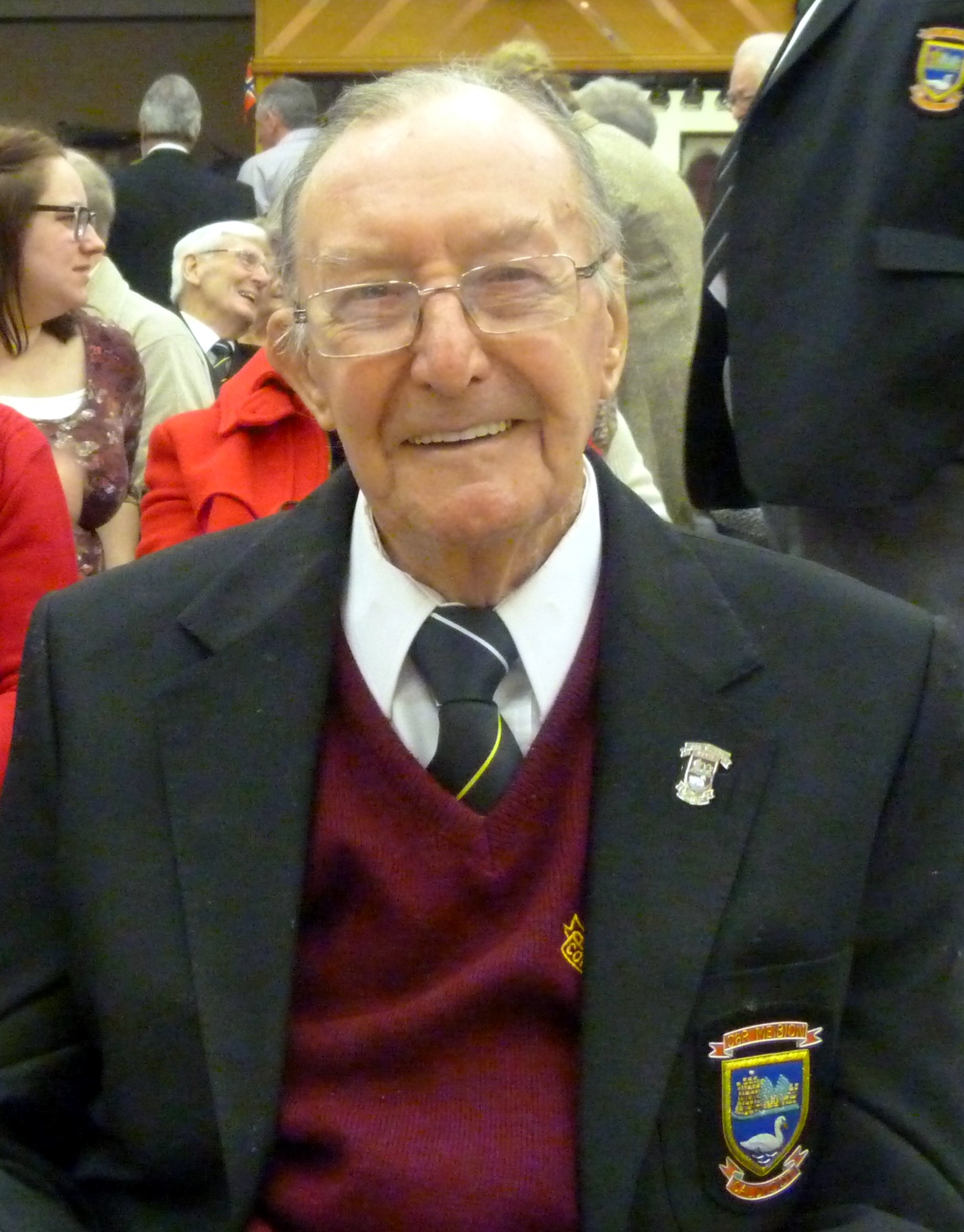 Ken has been a stalwart and loyal supporter of the choir for over 42 years since moving from Margam to Underwood where he was involved in local politics and was also a school governor at Llanmartin Primary School. Ken had an active varied life having also served in the army and had volunteered as a local Scout leader. Until his retirement from Choir practices at the end of last year, Ken was always to be seen from his central position amongst the second tenors with a beaming smile and a wave to all who came into the hall. Ken was devoted to our Choir which came second only to his love of his wife of 62 years Marilyn, his son and four daughters, thirteen grandchildren and six great grand children. He was well known as a devoted family man and father, for his wicked sense of humour, his friendship and warmth and can best be described a a true gentleman, loved by all. The photograph above was taken at his last appearance at the Choir Hall when he attended, proudly in his blazer and greys to see us perform on St David’s Day.