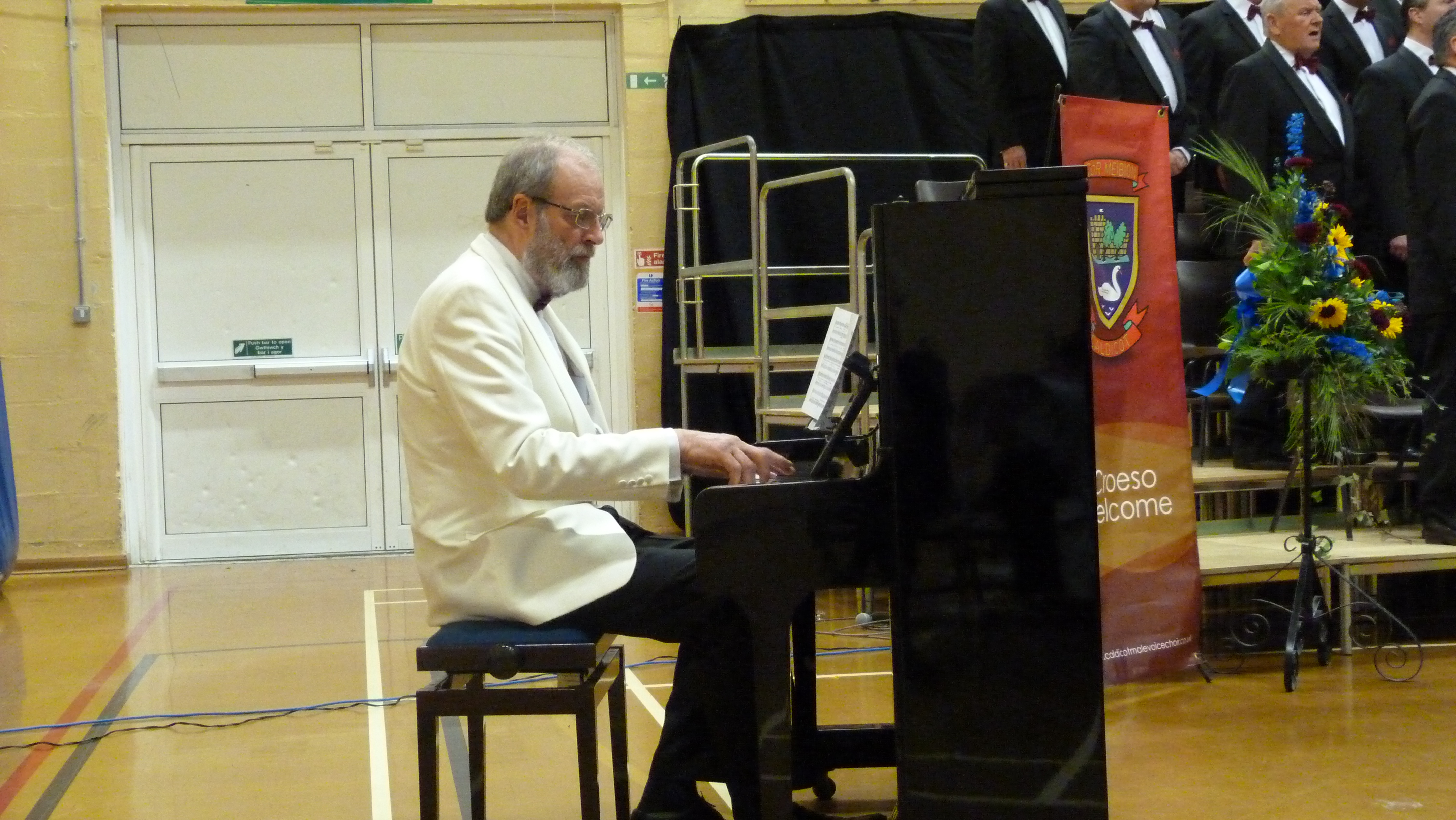 During breaks in its world wide journey of song, the choir was wonderfully supported by local prize winning soprano Ffion Edwards, recently returned from her Eisteddfod winning performances who, accompanied by Stephen Berry similarly led us through a wide range of songs from throughout the world. Starting with ‘What good would the moon be’, to ‘Welsh ‘Mae Hiraeth yn y Mor’, the inclusion of Strauss’s ‘Schön sind doch kalt’ and ‘ Breit über mein Haupt’, the always popular Puccini’s ‘O mio Bambino caro’, to Cornwall’s ‘Poor Wandering One’ from The Pirates of Penzance and including her mother’s favourite ‘Yr Alarch’ – The Swan, also set to music by Eric Jones. Ffion also sang this when presented with the Geraint Morris Memorial Award at the Choir Hall last October. As a result of winning this award, Ffion has been invited to sing as guest soloist, along with Caldicot Male Voice Choir at the Royal Albert Hall on May 19th.