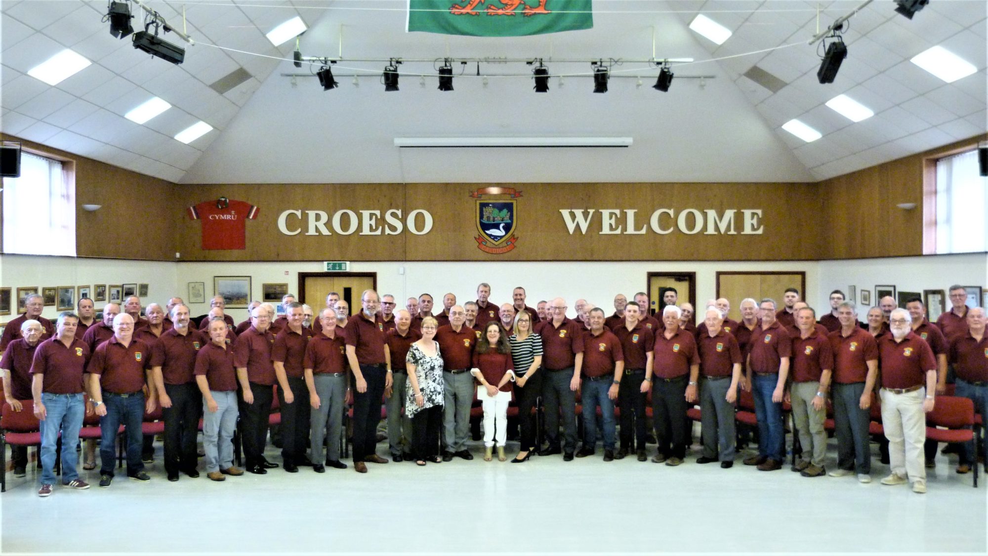 Similarly at the television broadcast, the lead in was the choir singing ‘God Bless the Prince of Wales’ before Nicky Smith described the choir hall surroundings and how this must be the biggest event in the choir’s history before asking Lyn again how did the invitation come about and how did we prepare for it.  Nicky then moved onto Musical Director Siân to ask which music we swill be singing. The reply was ‘a mixture of Welsh Music and something romantic for Harry and Meghan. Nicky made some closing remarks before the choir broke into ‘Cwm Rhondda’ for the lead out.  Nicky then took the time to stand with the choir for a photograph taken by Colleen Gauntlett.