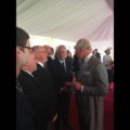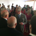 Following our performance and a delicious round of sandwiches, cakes, tea and other treats we were delighted that Prince Charles and his wife Camilla came into the Royal tent to join us and chat to several of he choir members including Siân Hatton (that’s my husband over there said Sian) and Shirley Anne James our two musical directors. The Prince and Camilla congratulated both on the performance and noted that we had appeared at the Royal Albert Hall. Other choristers spoken to were Andy Friedman, Roger Francis and Garry Keeble who had met the Prince at the opening of the first Severn crossing. ‘That was a long time ago’, commented the Prince. Moving along the line the Prince and Camilla had a brief chat to a number of choristers,including David Currie, Ron Powell, David Gould, John MacArthur and Lyn Gauntlett. Among many questions the Prince asked which sections did they sing in and thanked them for their hard work and for coming to his party. Bass chorister Oliver Edwards was introduced to the Prince as the youngest Mayor of Caldicot Town Council and the thrilled Bill Nash was introduced as probably the oldest, active chorister in Wales at 95 years of age. On departing, the choristers conveyed their thanks for the invitation and wished Prince Charles a very happy birthday.