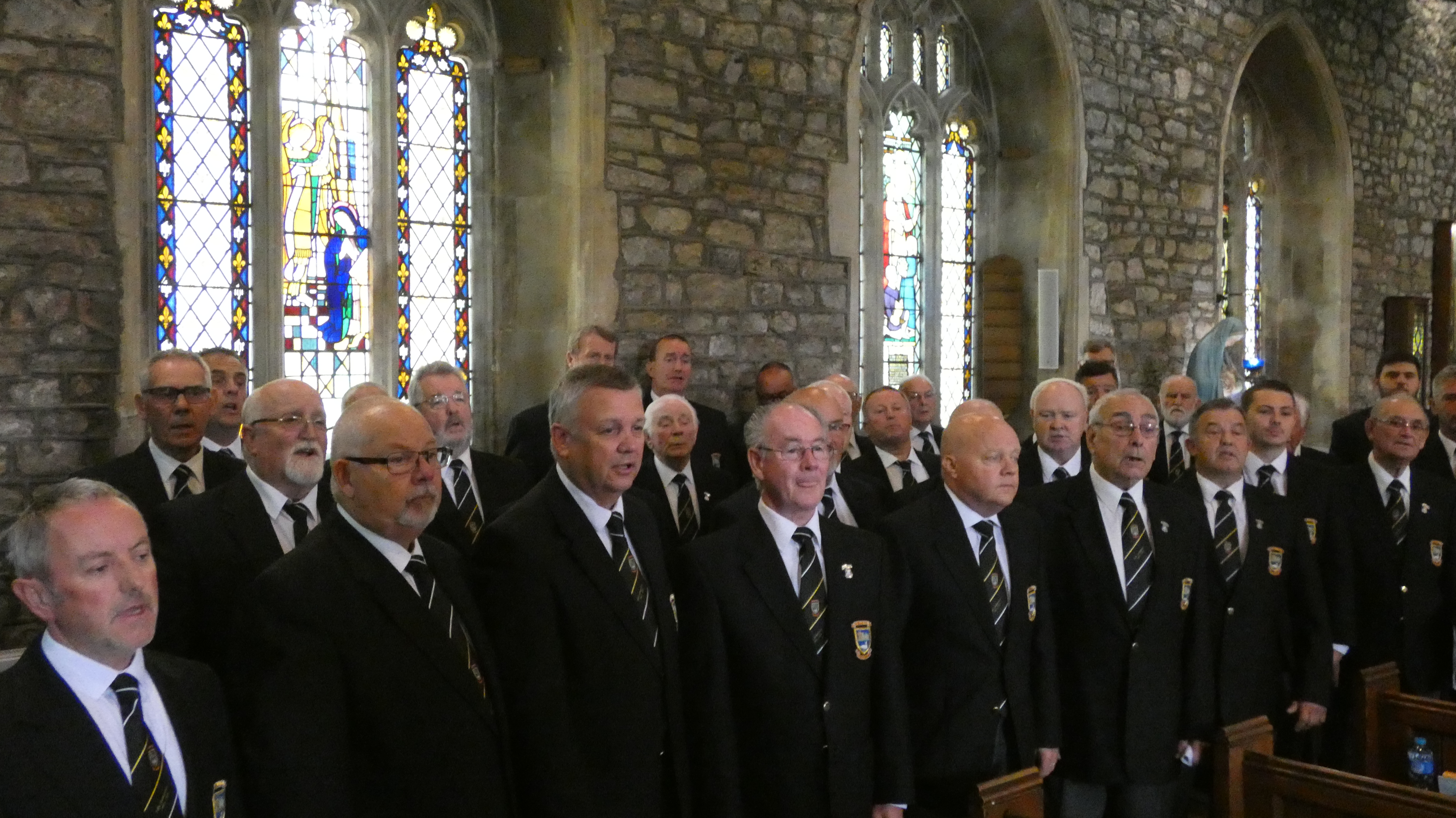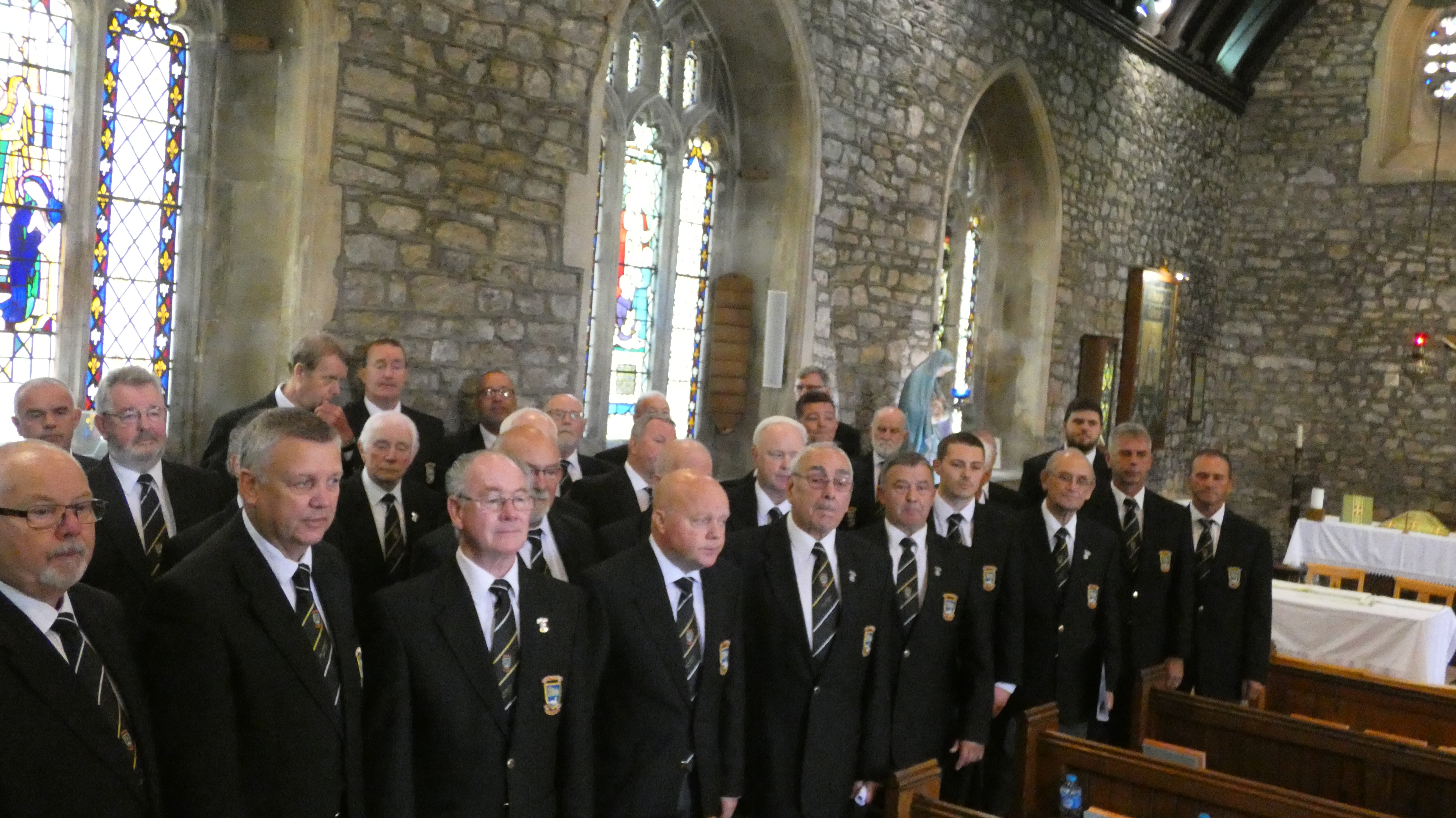 On a glorious Summer Saturday 4th August, over 50 members of Caldicot Male Voice Choir made the short journey to St Mary Virgin Church in Caldicot to take part in the celebration and service of the wedding of Caroline Nash to Andrew Bundock. Caroline is a teacher at Castle Park Primary School in Caldicot and has heard the choir sing before at its recent Christmas Concert at the choir hall when it shared the stage with the wonderful school choir. Andrew works locally as a civil servant and the couple have been together for nineteen years before tying the knot.