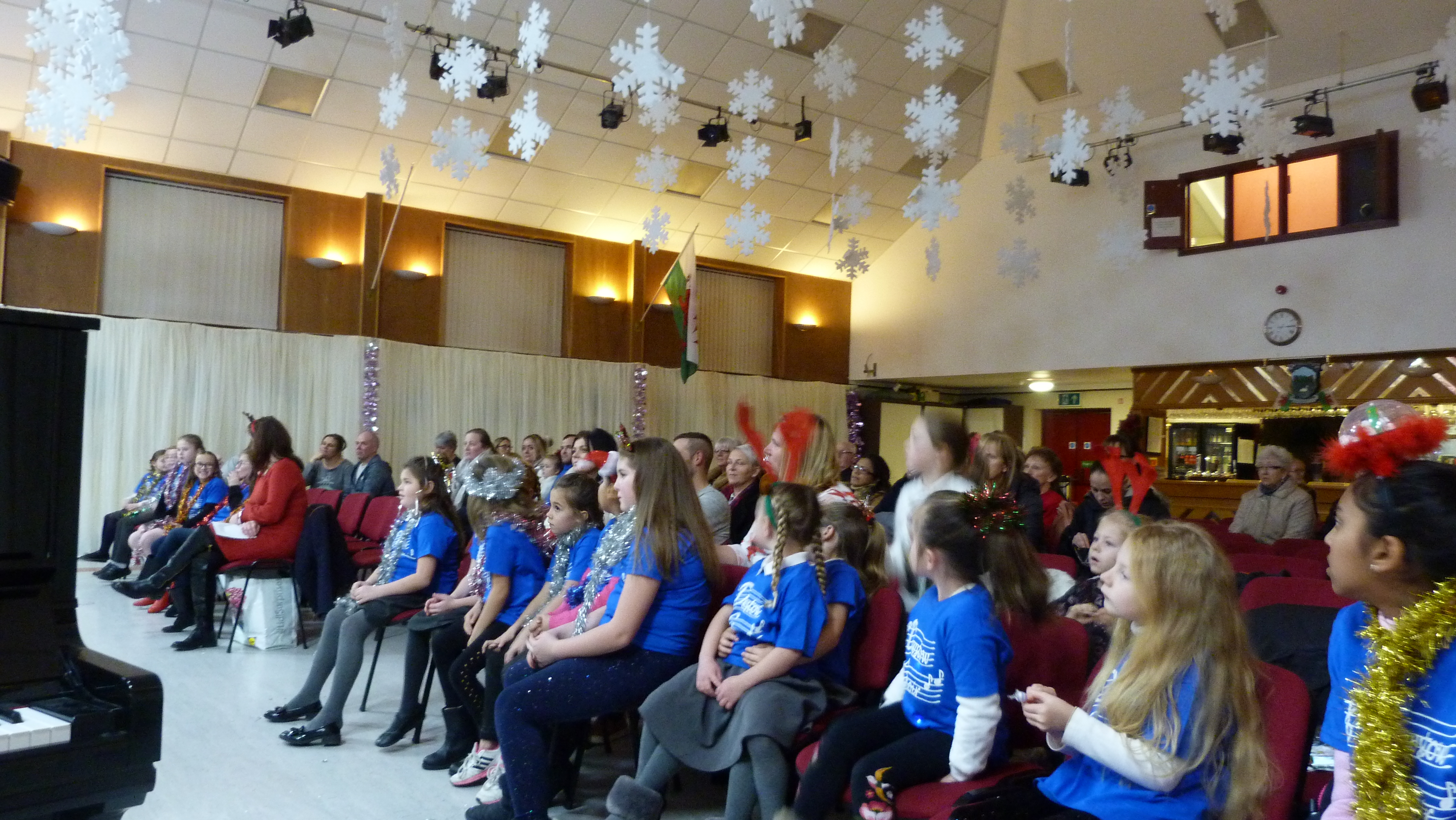 To open its busy festive season. Caldicot Male Voice Choir invited the children of Dewstow Infants School to join in some festive fun and carol singing at the choir hall on December 11th. The small choir of about twenty girls and one boy entertained the choir and the audience with three festive songs; ‘Midnight’, a swinging, foot tapping ‘Christmas calypso’ and and a body swinging ‘Gospel rap’ which brought a huge round of applause. Full credit to the school choir because under the tuition and guidance of their teacher, Kerry McDonald they had only three weeks in which to practice