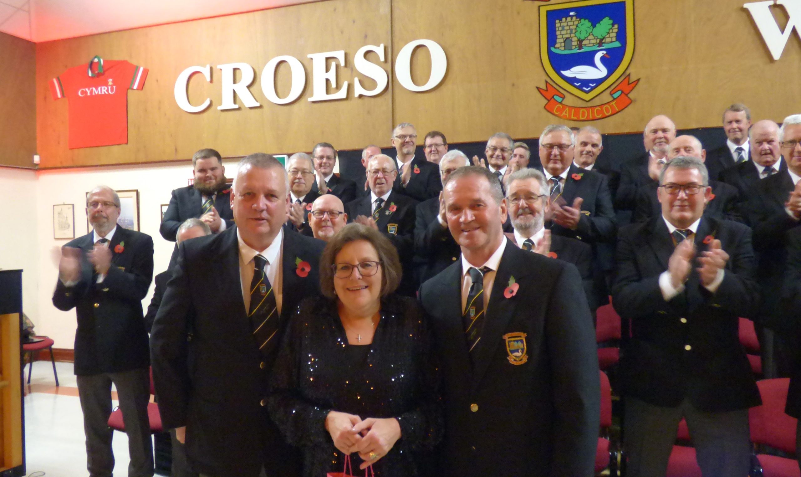 The concert was attended by invited guests Jessica Morden MP, John Griffiths SM, Cllr. Meirion Howells, chairman of Monmouthshire County Council, Cllr. Lisa Dymock of Caldicot Town Council and supporters Marjory Bartlett and Jennifer Coombes. Also in the audience were Gwyn and Margaret Jones who were also celebrating their Diamond Wedding Anniversary. The choir paid tribute to long serving chorister Peter Heslop on the occasion of his 80th birthday on the night and to debut chorister, baritone Kevin Evans.