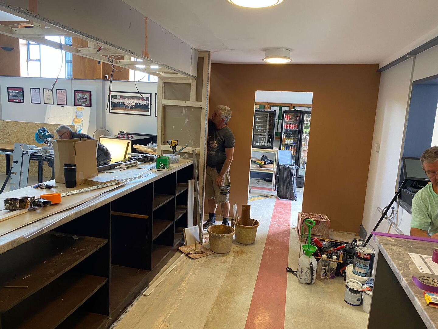 The work is nearing an end and the latest project has been the replacement of the 25 year old bar. The bar was very dated and not up to modern standards so a team of chorister volunteers consisting of Leon Jones, Tony Howells, Paul Thomas and Russ Woodward took on the major project, putting in many hours after their normal work to replace it. Needless to say several other choristers assisted and supported over the weeks in re–painting, cleaning, tea making and restocking.