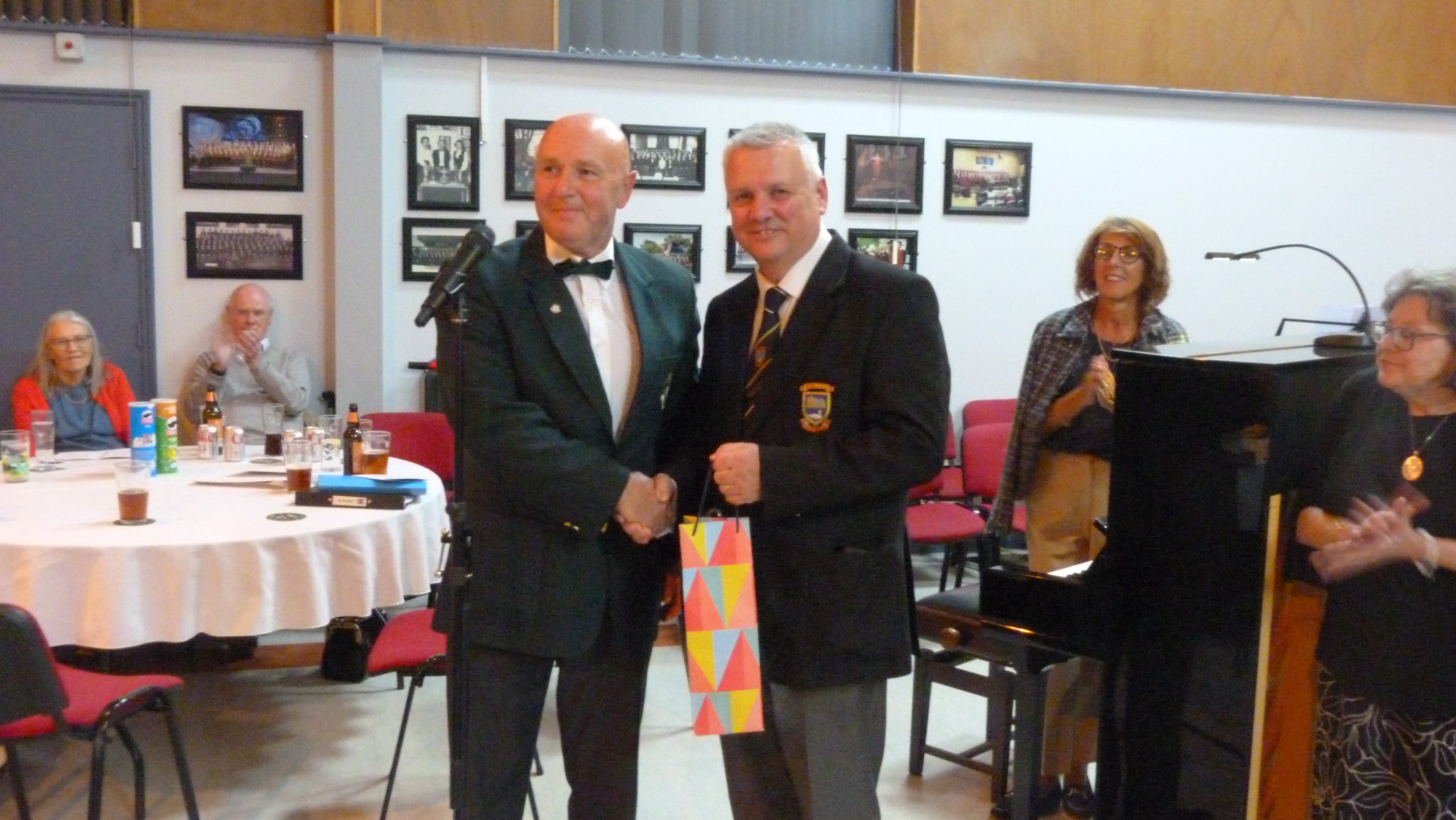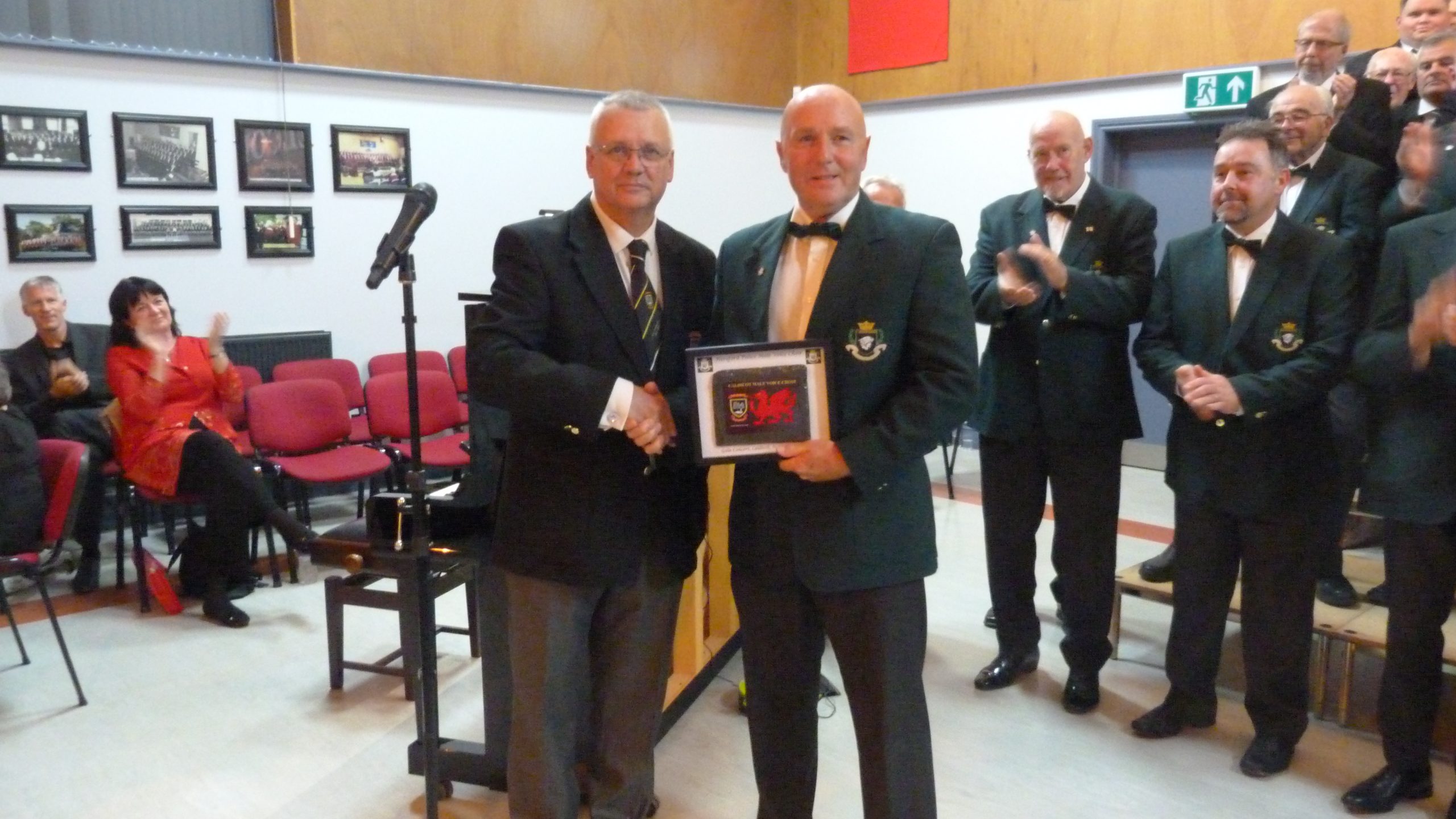 The concert ended with the presentation by Caldicot’s chairman Graham Hughes of a hand-made, framed slate plaque to Hereford chairman Ray Williams.